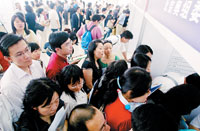 招聘会上,奥组委展台前最热闹,不少海归争着递简历。