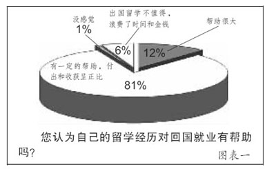 但是我们也必须正视一个事实,那就是:认为留学对自己回国就业有很大帮助的海归毕竟不到五分之一,而大部分海归和他们的家庭都曾经为出国付出了极大的财力和时间。从这一点来看,尽管他们认为留学有所收获,有利于在国内就业,但是并未达到理想效果。同时,统计结果也表明,仍有部分海归认为自己当年出国留学比较盲目,没有弄清自己到底是否适合留学,出国所学专业是否适合自己,结果造成时间和金钱上的浪费。这都说明,海归身上的耀眼光环已经逐渐淡去,要想在国内就业如意、创业成功,光是依靠自己的洋学历已远远不够。
